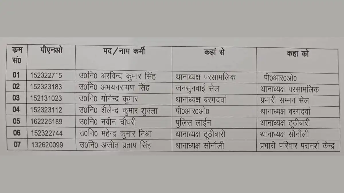 Maharajganj News: महराजगंज पुलिस में बड़ा बदलाव, सात उपनिरीक्षकों के कार्य क्षेत्र में फेरबदल