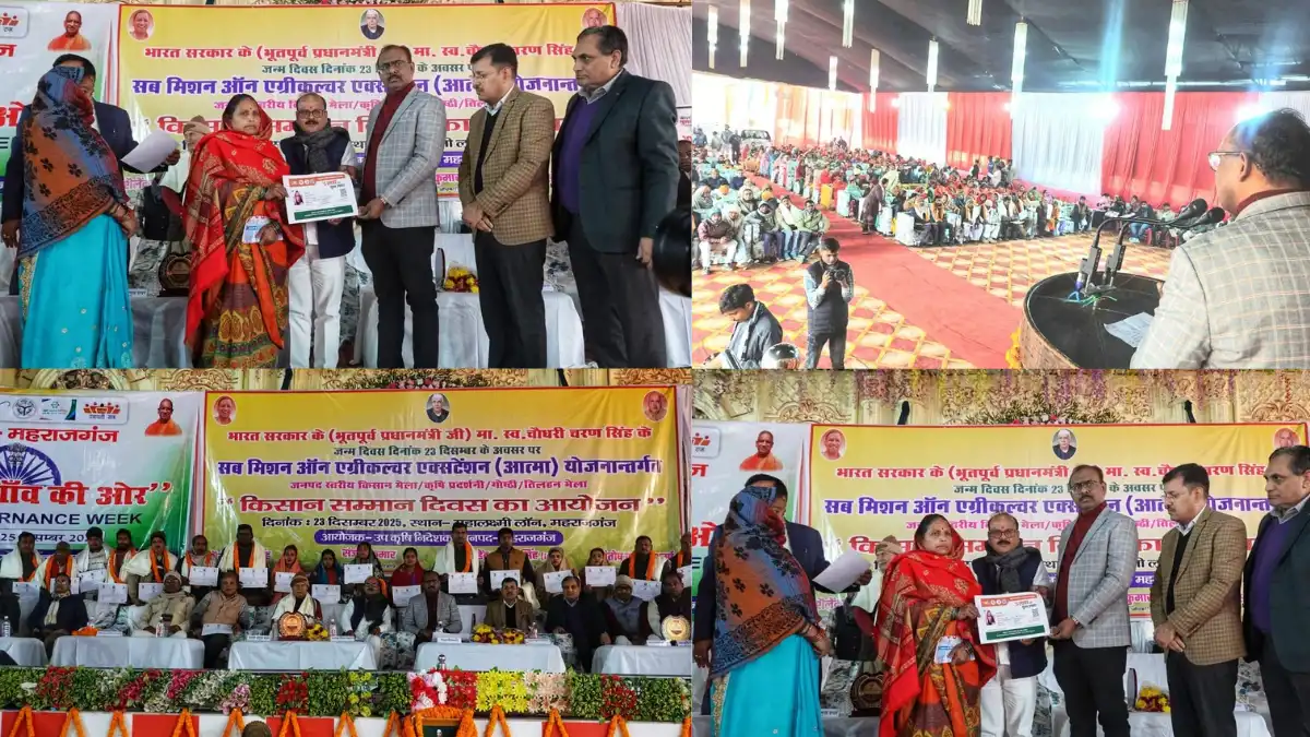 Maharajganj News: पूर्व प्रधानमंत्री की जयंती के अवसर पर जनपद के महालक्ष्मी लॉन में किसान दिवस समारोह का किया गया भव्य आयोजन